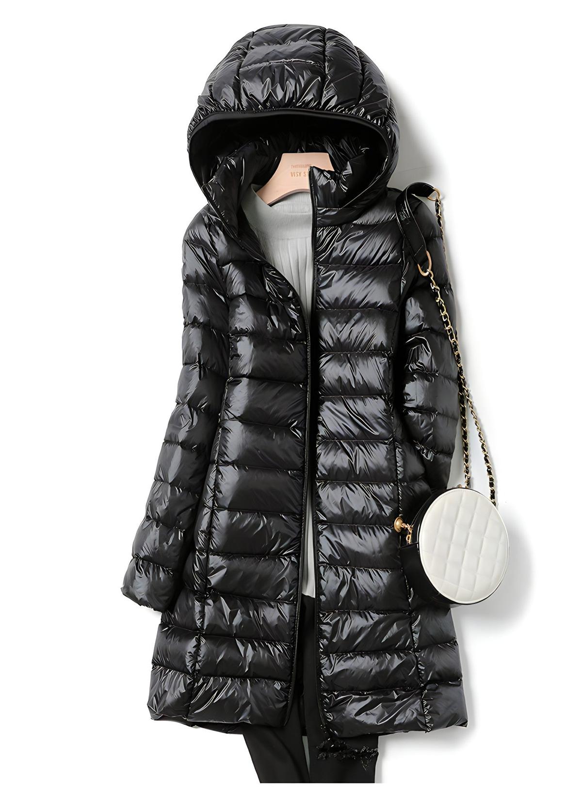 Enhance your winter style with our lightweight, elegant long down jacket for women.